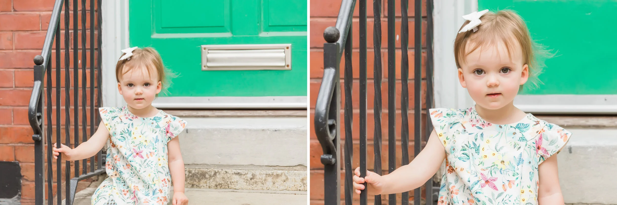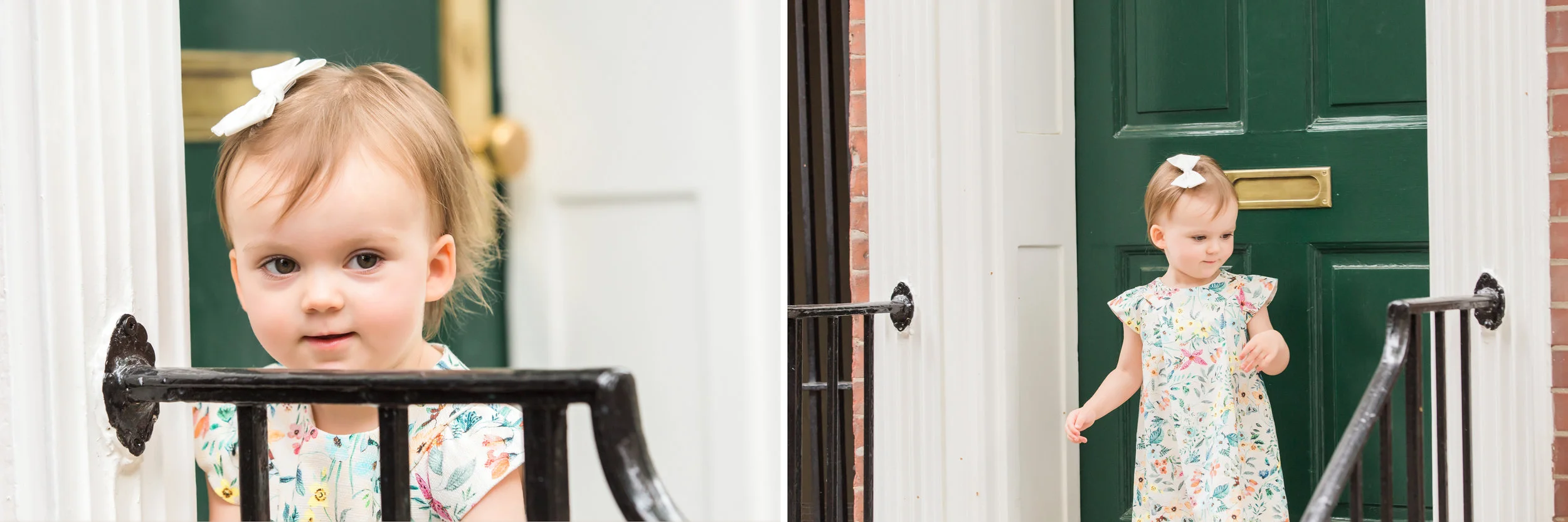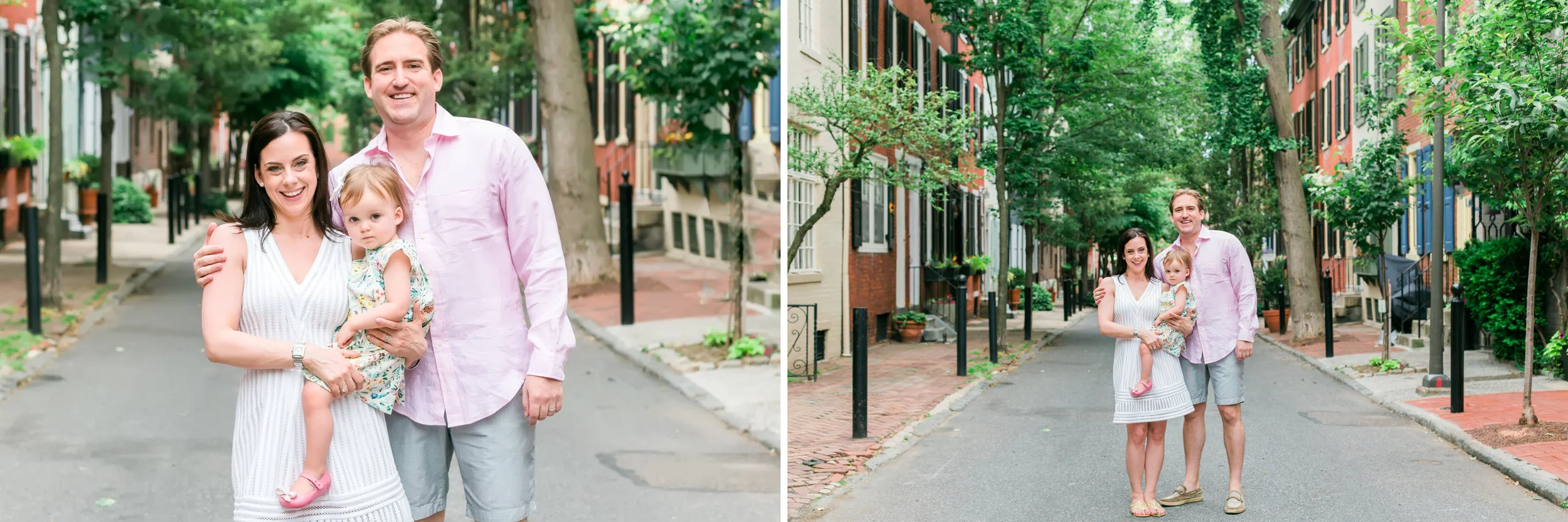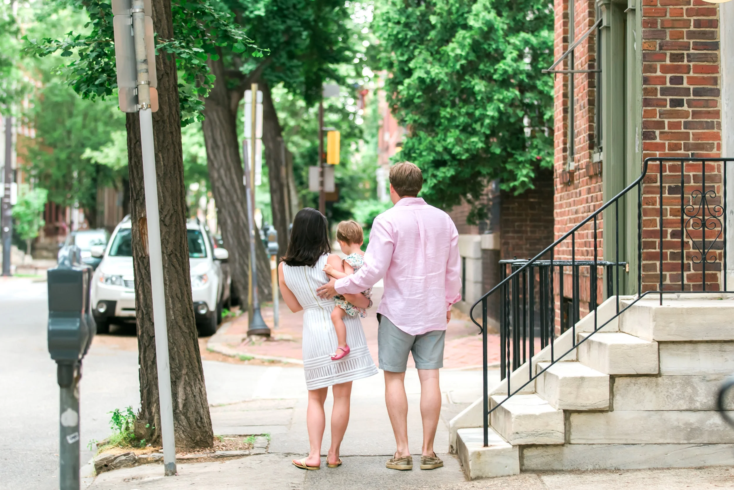 I was so excited to work with this family again! I took Grace's one year photos back in September and was thrilled when her mom reached out to me again to schedule a family session. This was my first time shooting on the streets of Philadelphia and was so excited for the change. A lot of these photos were taken on Smedley Street which was a hidden gem near Rittenhouse Square. The bright colors of the buildings and the beautiful greenery made for some great photos!