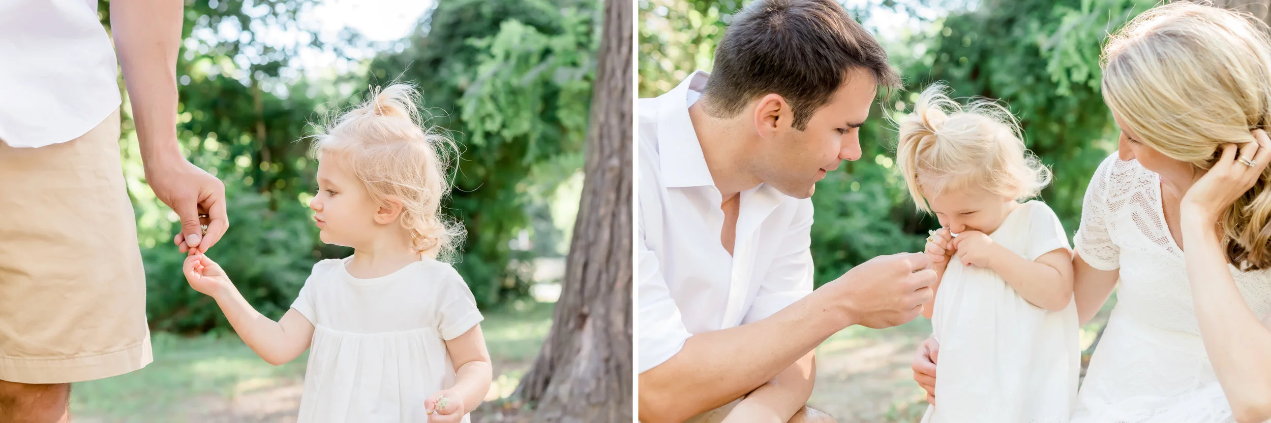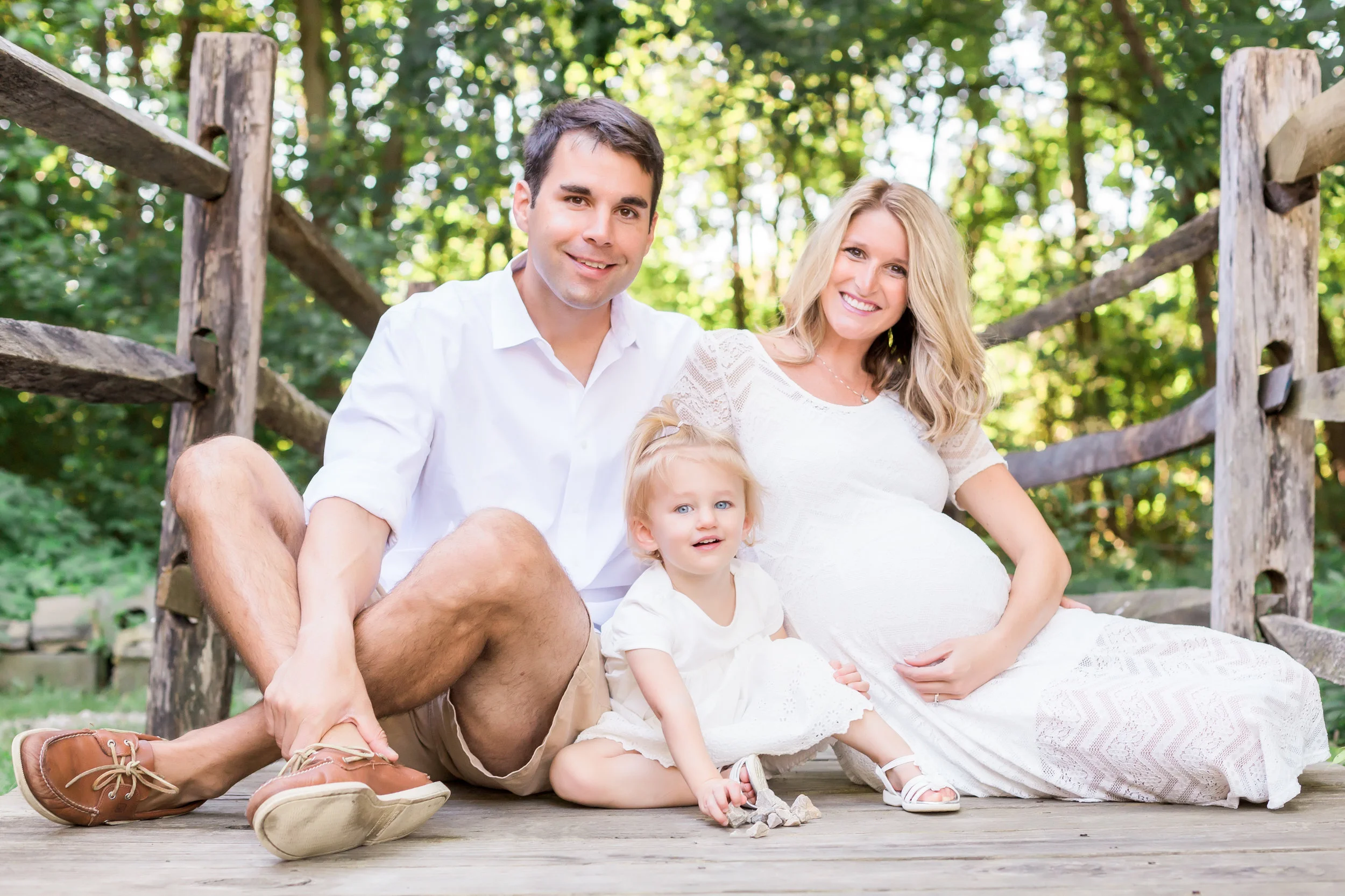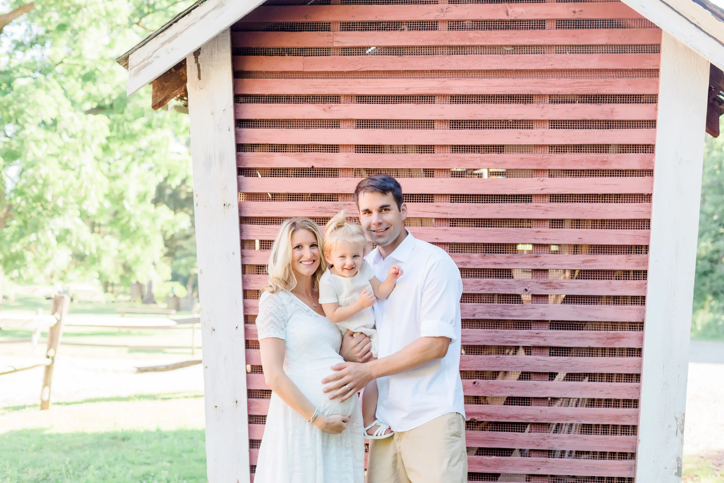 I met Erin on a hot summer afternoon at the neighborhood playground. We were both pushing our toddlers on the swings and started chatting. She was adorably pregnant and mentioned that she wanted to get some family photos taken before they become a family of four. The timing of our meeting was great!! A couple weeks later we met up at Croft Farm Arts Center in Cherry Hill and had a wonderful morning session on a beautifully sunny day. Their adorable 21 month old daughter Brooke was so sweet and kept me on my toes as she was having a great time exploring the park and running around. I was able to get some great posed and candid shots and am really happy with how the session turned out!