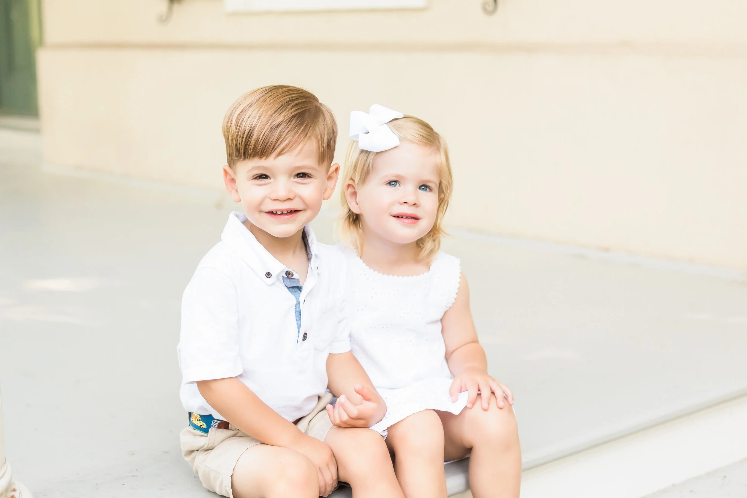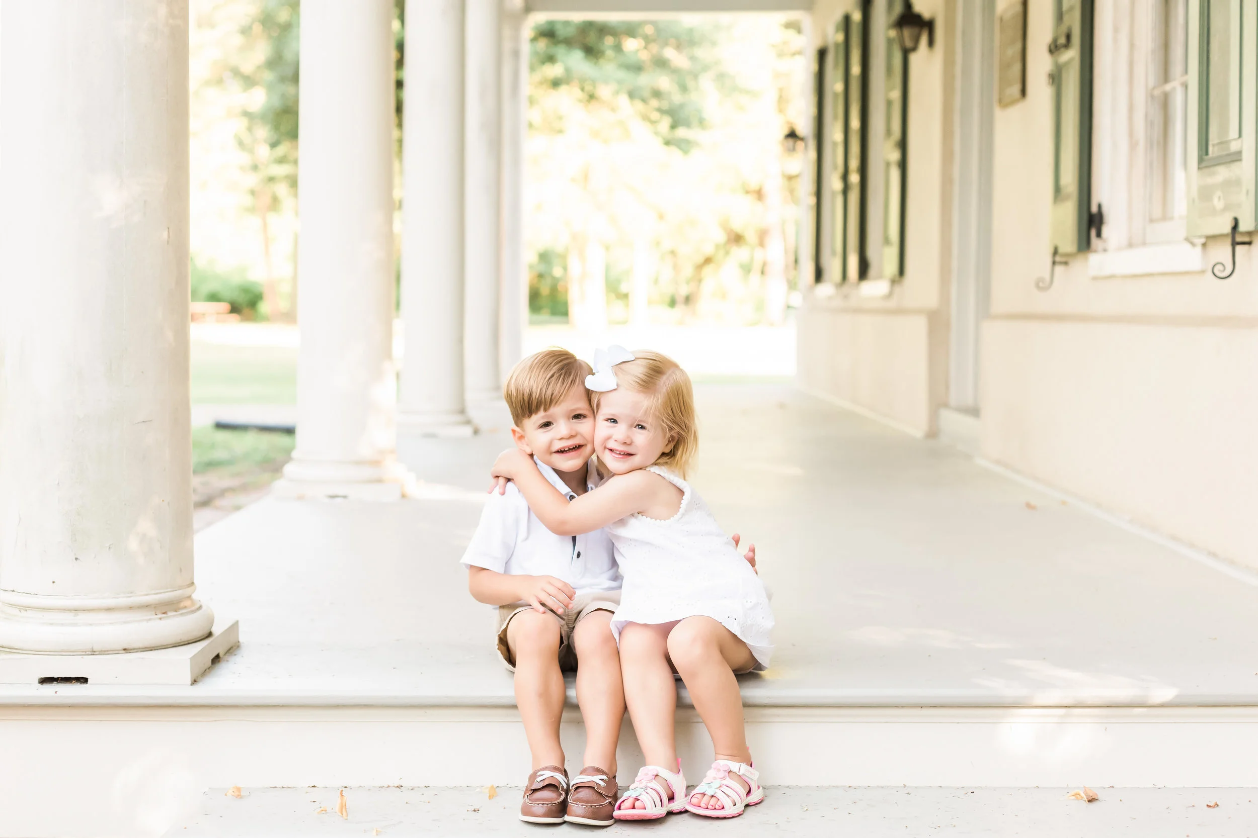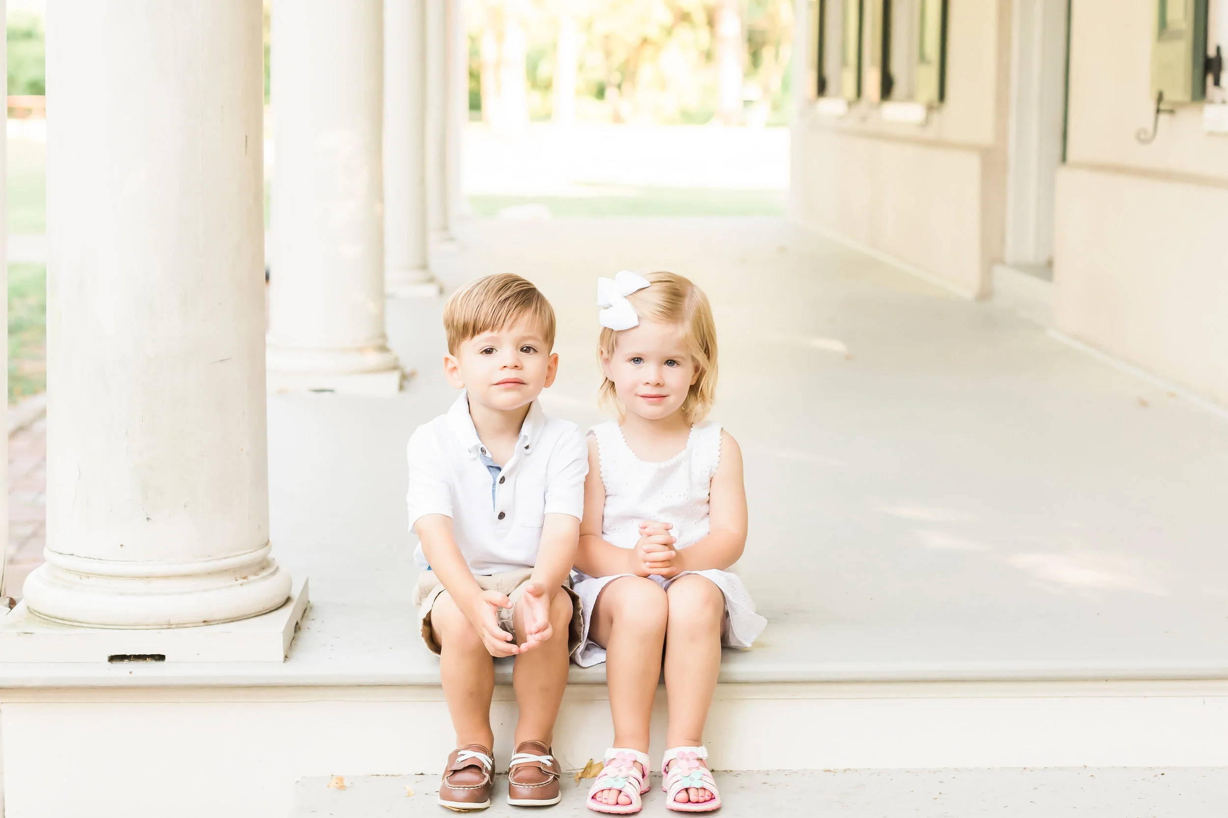 This was my first time photographing twins and the sweet bond these two shared with each other was almost too cute for me to handle! They were so sweet with each other and really enjoyed being close together. We had a great session on a Thursday afternoon and right after they left with their parents for a weekend at the beach! The pictures of them sitting together on the porch are my favorite. I can't wait to send this gallery to their mom!