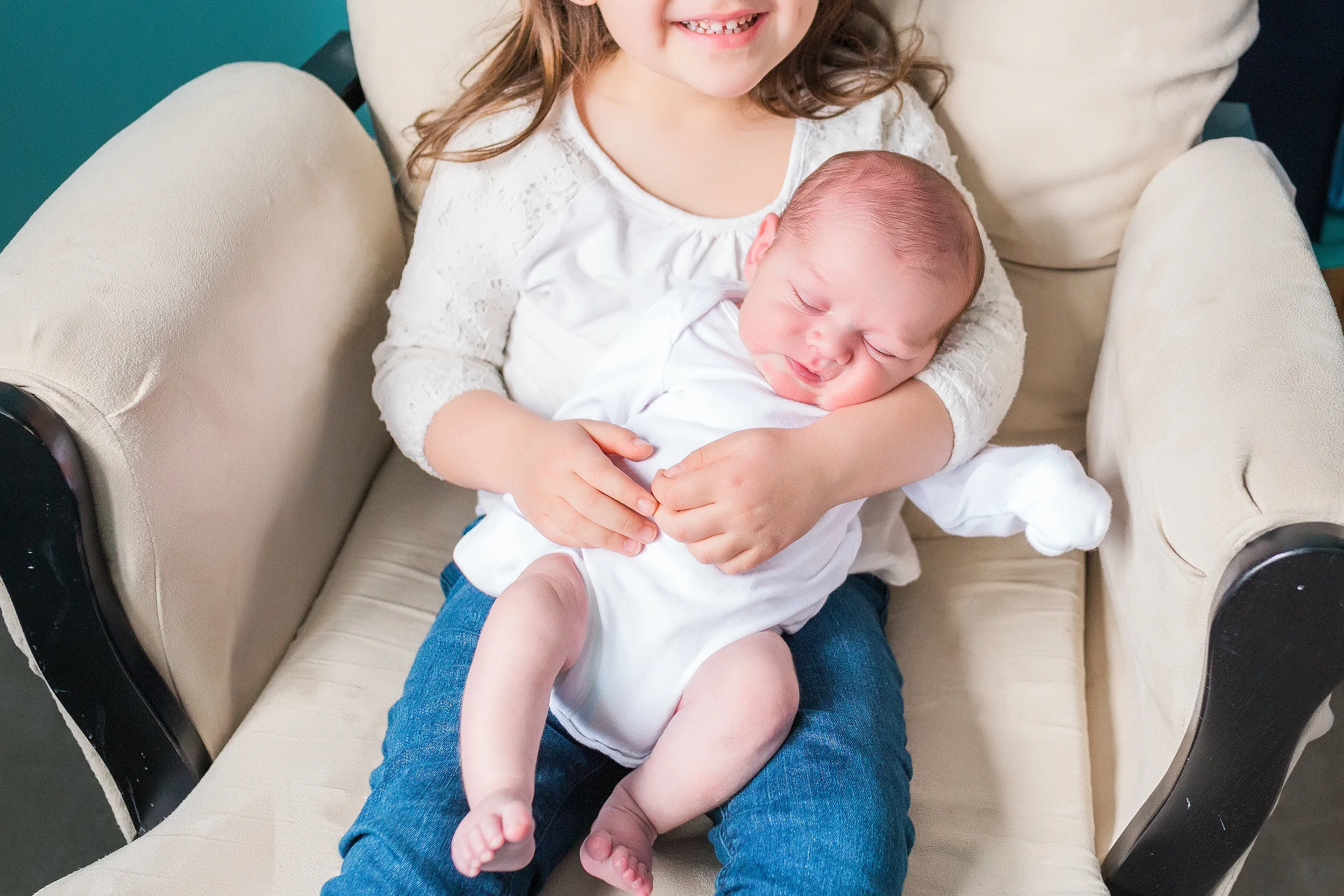 I am excited to introduce you all to Mr. Aidan James, 10 days new! I had such a great time during his lifestyle newborn photography session. His parents Dani and Sean and big sister Emma are so excited for their new bundle of joy. Emma was the best big sister and was so excited to hold and take pictures with her new baby brother. She was also very excited to show me her pretty pink bedroom and piggy bank collection. Aidan was super alert and probably closed his eyes for a total of 5 minutes during the entire session. I’m pretty sure it was because he loved having his newborn photos taken :) We also got super lucky weather wise (70 in March!) and were able to sit on the front porch for some family photos. I loved documenting all of these precious memories for this family to cherish forever. I am so happy that they welcomed me into their home to take their pictures as a new family of four. Below are just a few of my favorite photos from their session.